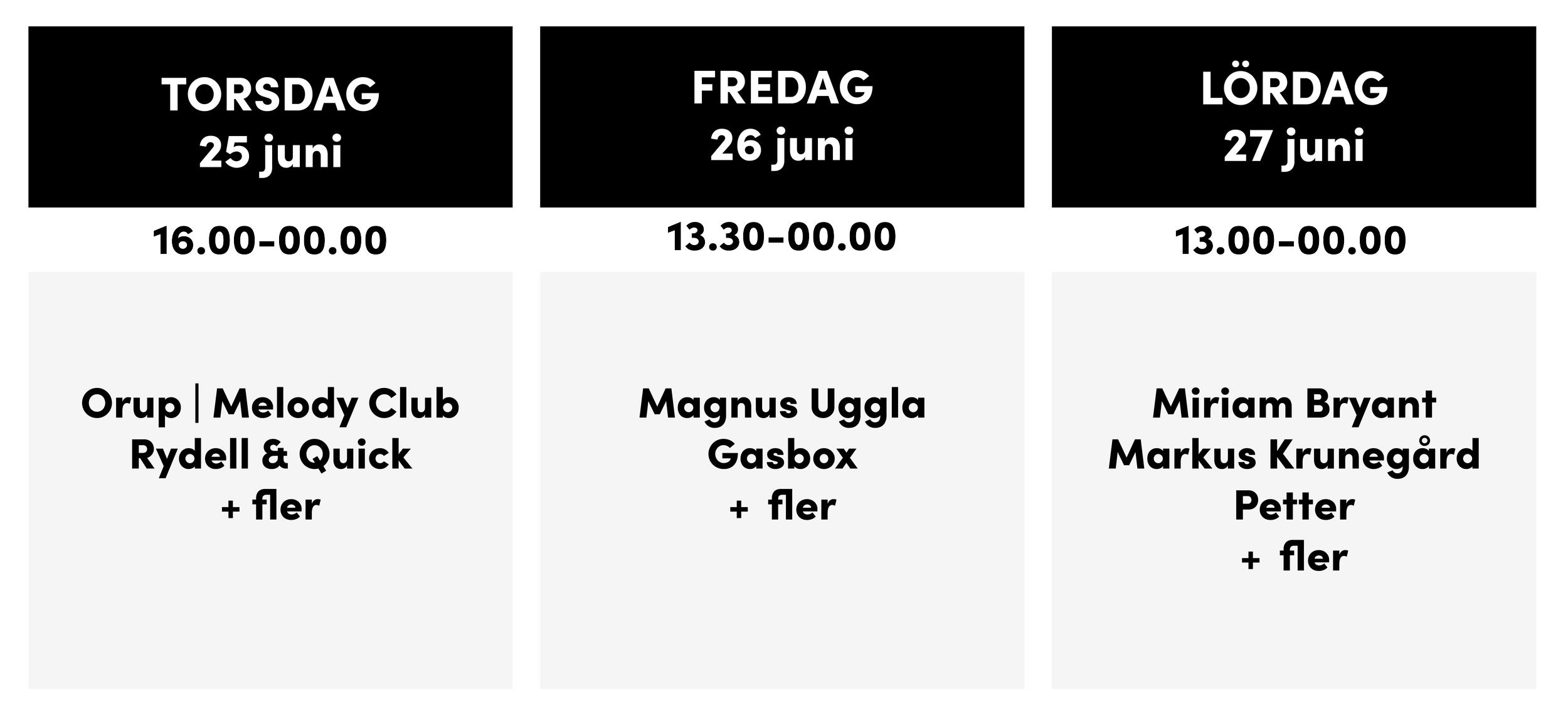 Ett av popscenens mest färgstarka band tar med sig sin energifyllda musik till sommarens festival. Melody Club rör sig mellan 80-talets synth, new wave och moderna popmelodier och skapar ett sound som snabbt drar med sig publiken. Deras låtar och uttryck har gjort avtryck långt utanför landets gränser och lever vidare hos fans världen över. Med favoriter som “Electric”, “Palace Station” och “Covergirl” väcker de minnen från tiden då allt började. Till sommaren intar de Torsjöscenen - det kommer att bli elektriskt!